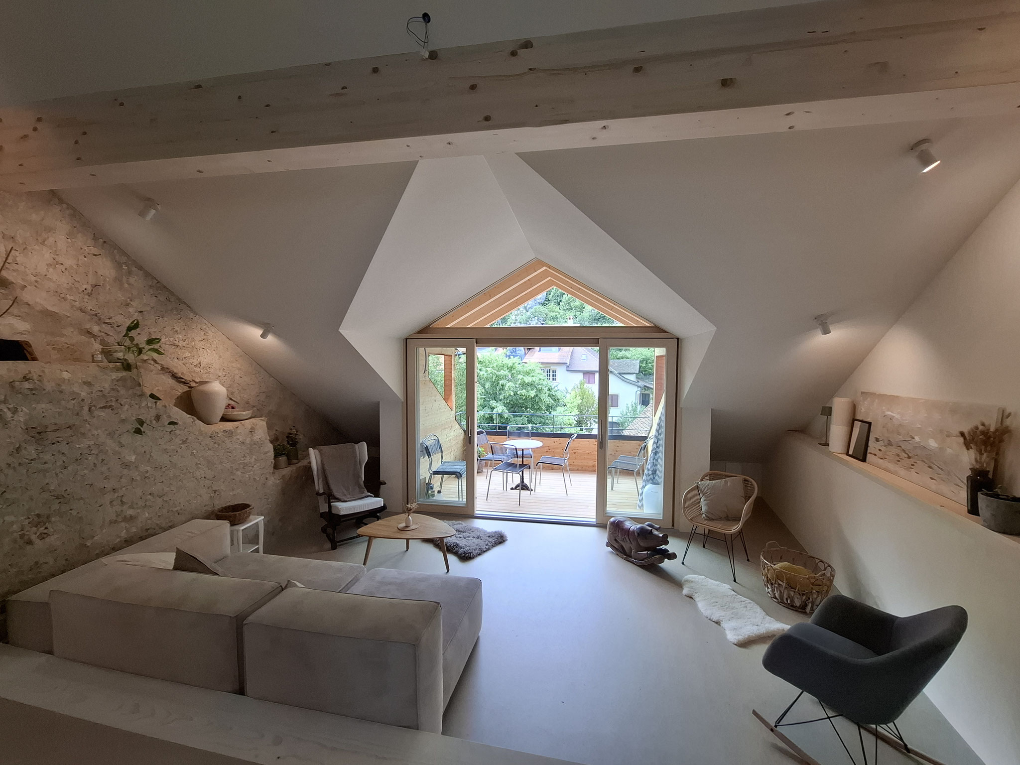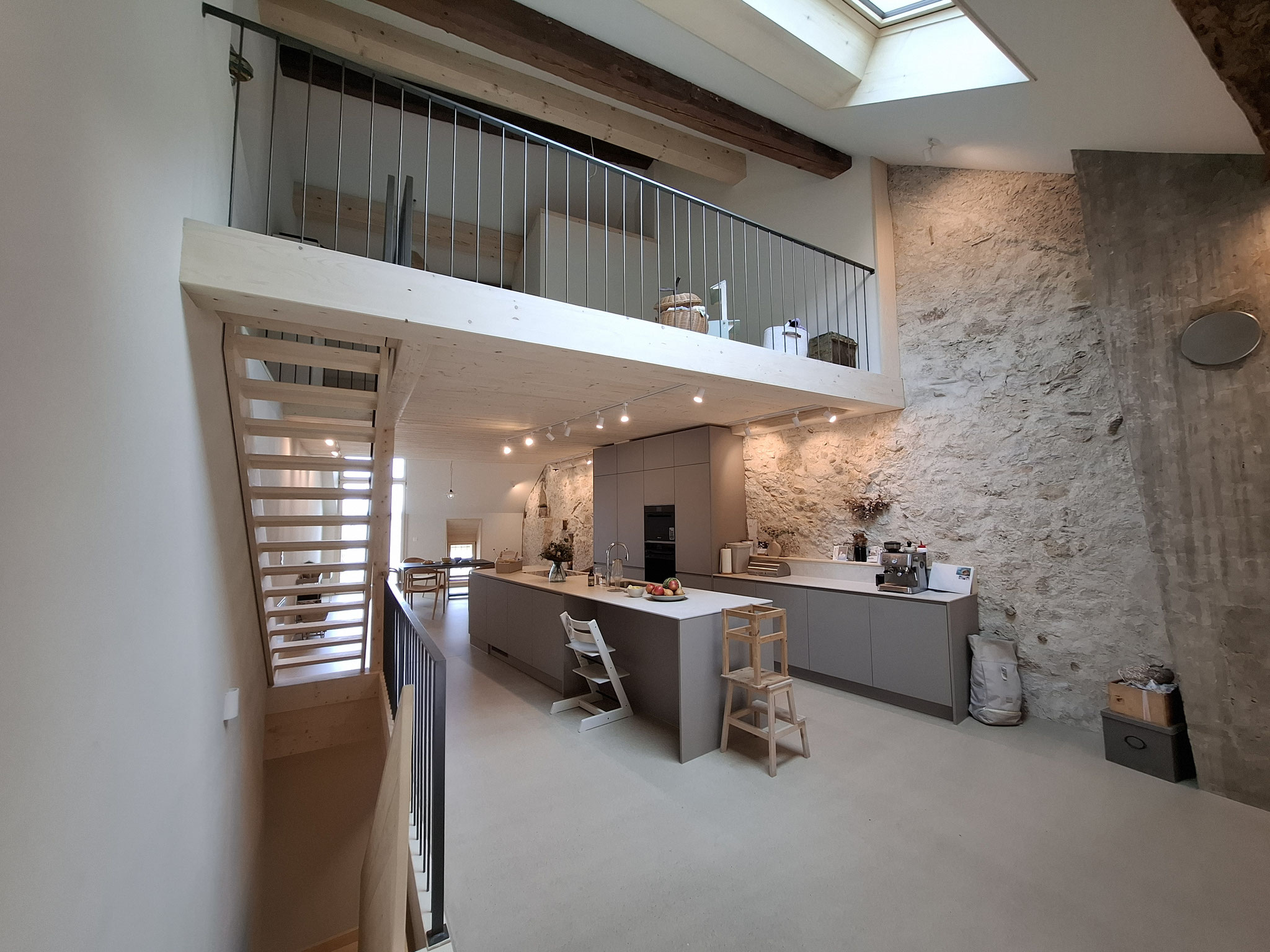 Die Kundinnen in diesem Projekt möchten ihren Estrich neu auch als Wohnraum nutzen. In Zusammenarbeit mit ck Bern Architekten planen und bauen wir ein neues oberstes Stockwerk mit einer Raumspartreppe in den ehemaligen Estrich. Dieser kann nun als Spiel- oder Gästezimmer genutzt werden.